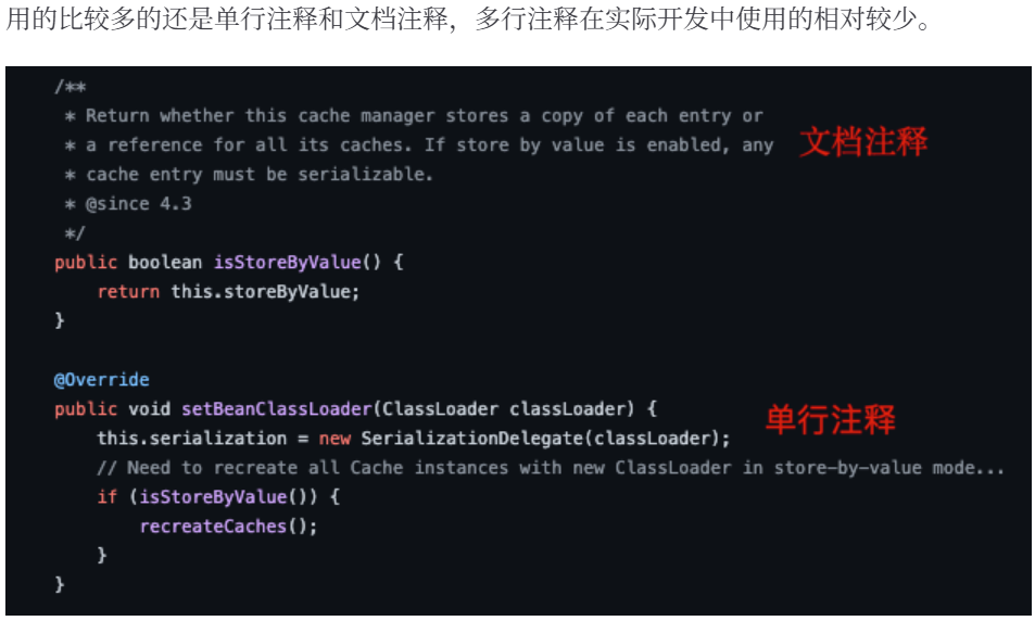 单行注释: 通常用于解释方法内某单行代码的作用。
