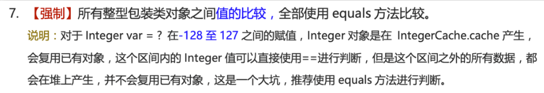 ==比较的是值。对于包装数据类型来说,==比较的是对象的内存地址。所有整型包装类对象之间值的比较,全部使用equals()方法。
